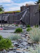 Placés méthodiquement et soigneusement dans votre jardin, les minéraux se dressent devant vos yeux (barres de schistes, menhirs, roches) pour donner consistance et hauteur, ou tapissent le sol pour délimiter un espace, dessiner un chemin afin de guider vos pas avec assurance et élégance.